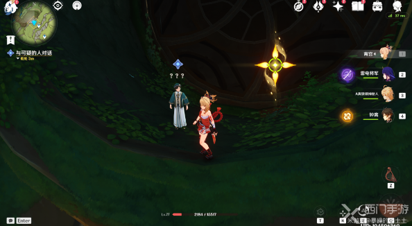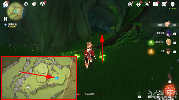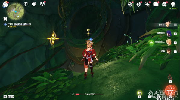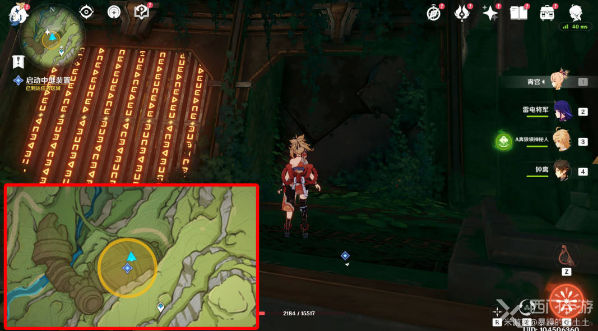 (1)前往标记出的地点,传送到巨型遗迹守卫下面的锚点,跟着任务提示最后来到此处,用草种子破开石墙