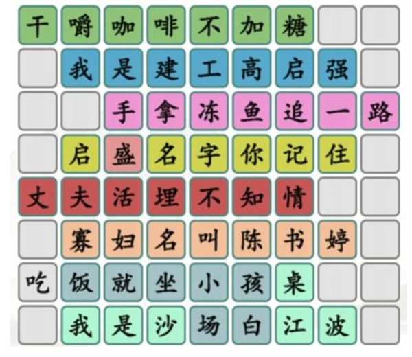 本关难度较大,相信不少玩家没有拼全,不会的玩家参考答案即可。