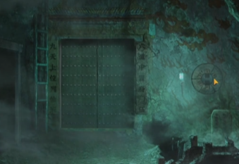 18、来到仙班苑,点击中间的门,把手轮挂在旁边书上面位置,暗门打开,之后故事剧情,成功过关。