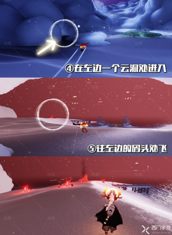 进入禁阁地图,从左侧位置进入小王子地图,然后一直往前飞,在左侧有一个云洞,从运动进入就可以到达星光沙漠,然后继续往前飞,在左侧的码头旁边就可以看到破碎的红石。