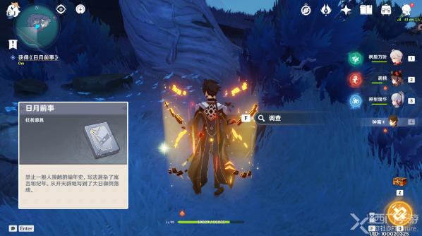 7、击败遗迹守卫后在他原本的位置进行调查,调查后即可获得任务道具《日月前事》;