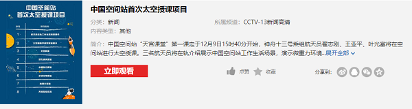 央视网是融合了所有央视的频道的软件,在其中我们可以看到所有CCTV频道的节目和内容,所有内容都是最新的,让我们可以满足观看的想法,在其中搜索【天宫课堂】就可以轻松的进行观看回放。