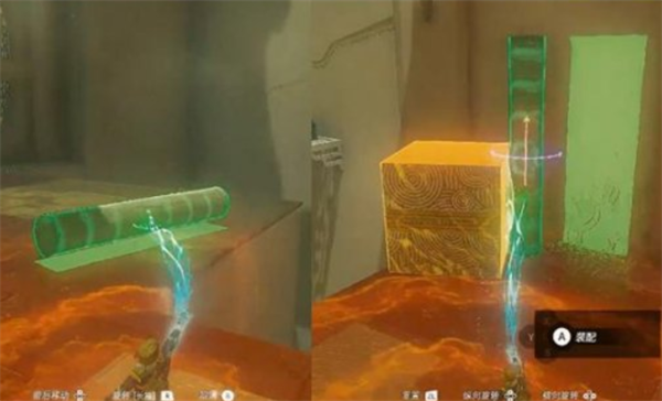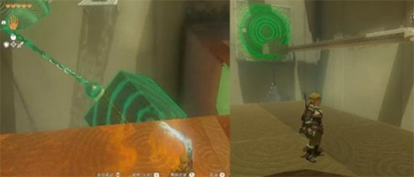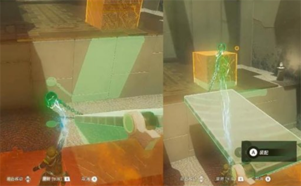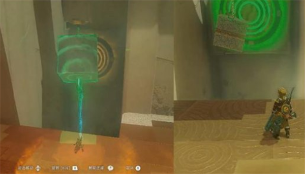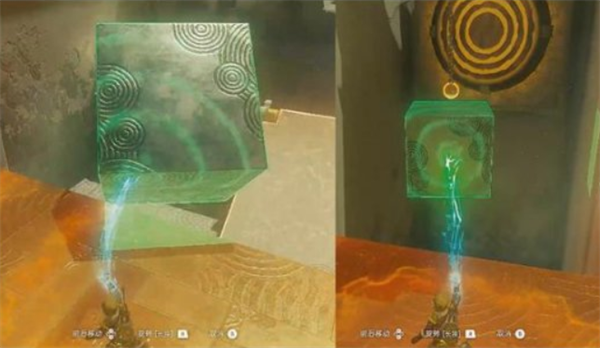 1、进入神庙,将前方的坑洞中的小球使用究极手拖上来,粘黏到正方体顶部。