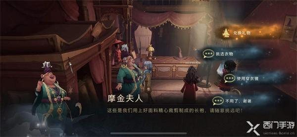 1、玩家们来到游戏中的对角巷,然后选择【摩金夫人长袍店】进入,可以直接从地图进入,进入后会看到摩金夫人的头上有一个圣诞树的图样,点击这个图样进行对话选择【兑换礼物】玩家们就能兑换圣诞礼物了。