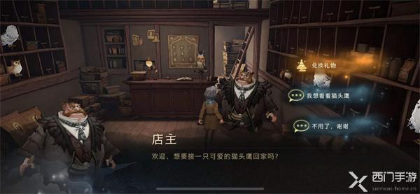 4、玩家们进入对角巷后去【猫头鹰邮局】,或者从右上角的地图传送,进入后玩家们就会看到店主的头上有圣诞树,点击圣诞树后开启对话选择【兑换礼物】就可以进行兑换了。