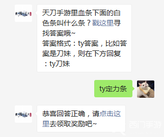 天刀手游里血条下面的白色条叫什么条?这个问题是今日的天涯明月刀手游公众号每日一题的问题,最近这款游戏十分火热,有很多的玩家都在玩这款游戏,同时也非常的关注游戏的相关活动,玩家回答对天涯明月刀手游公众号每日一题的问题后可以获得丰厚的奖励,那么今日的每日一题答案是什么呢?接下来小编为大家详细介绍。