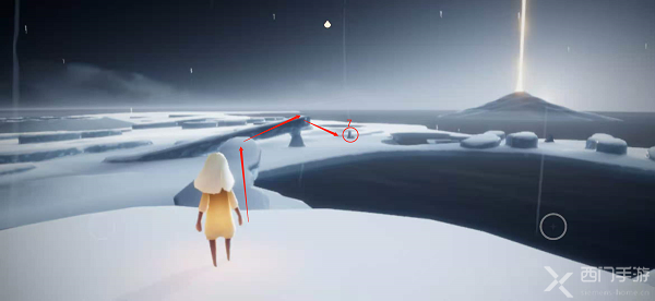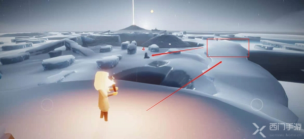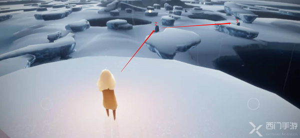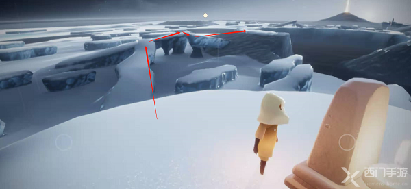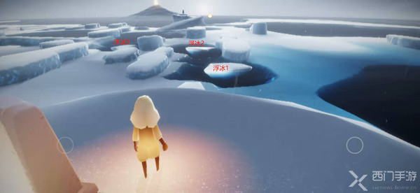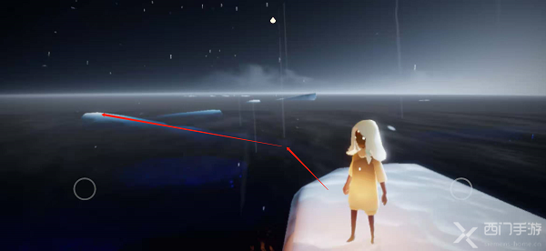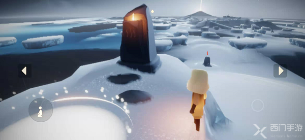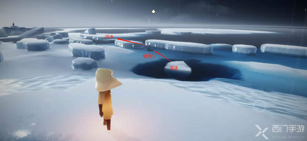 1.首先通过水之试炼入口进入到水之试炼(点击上方查看水之试炼入口),可以看到自己目前在一个冰岛上,旁边有一个石台蜡烛,并且自己的光翼都没了;