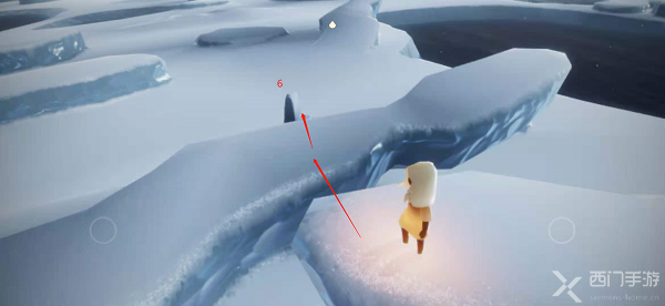 12.来到第一个浮冰上时,可以看到第六个石台蜡烛,跳下点亮第六个蜡烛,升起地面;