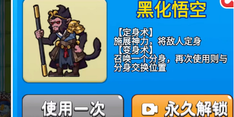 4、等玩家击败之后,就可以解锁黑化悟空的皮肤,这个永久皮肤也是需要看视频解锁的。