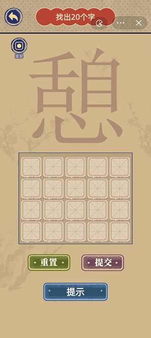 本关卡中我们一共需要在“憩”中找出20个汉字,而本攻略为大家带来21个汉字攻略,大家可以根据上方给出的21个汉字攻略,依次找出汉字即可通关。
