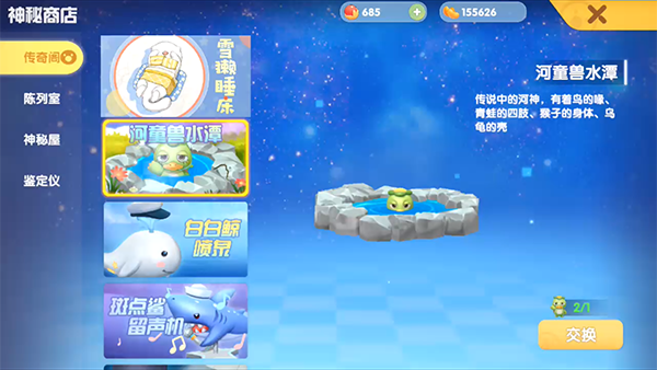 在爱心街区找到大力商人,对话后从传奇阁兑换家具,一个河童可以兑换一个河童兽水潭,兑换的家具可以摆放在家园中增加繁荣度。