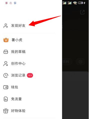 3、然后就可以打开菜单栏,第一个就是【发现好友】,点击一下;