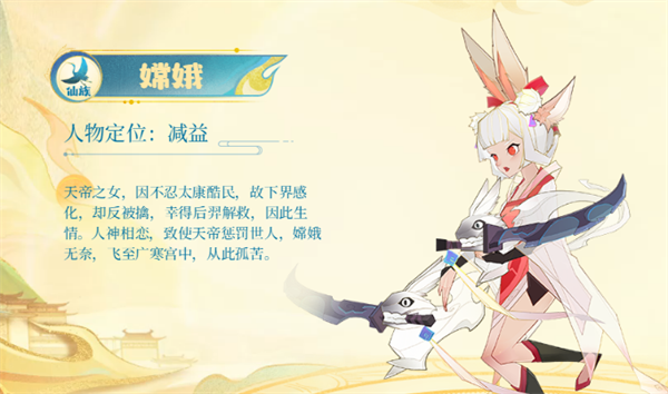 嫦娥是一个拥有群体攻击和免疫控制的伙伴,定位是输出和控制型的法师,嫦娥的技能伤害很高,功能全面的副C型伙伴,能在造成AOE伤害的同时造成群体减益,自身可应对控制,亦能保护队友。