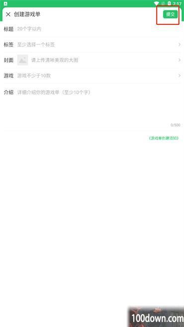 4.最后进入到编辑游戏单的页面中填写号内容之后点击右上角的【提交】即可;