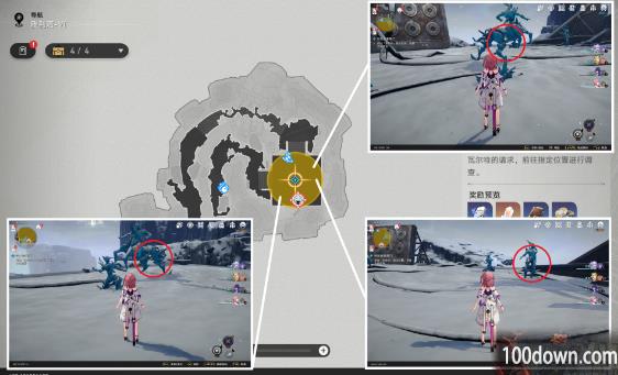 2、来到标记位置,调查三处冰雕;
