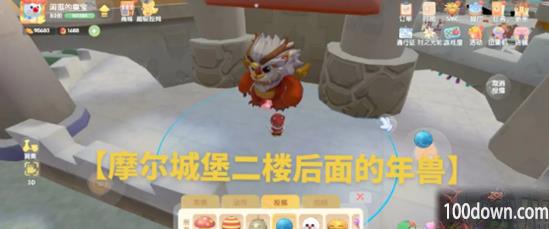1、玩家来到摩尔城堡二楼,在年兽的背后就可以找到一个汤圆拉姆。