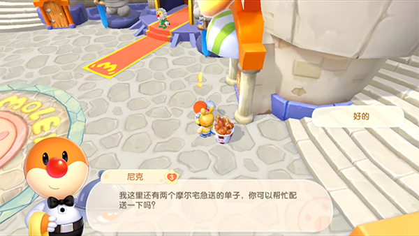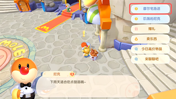 4.来到任务点,找到需要送外卖的NPC,点击对话选择“摩尔宅急送”;