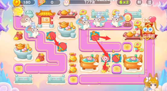3、第四波之前做到道具全清是比较简单的,第一个来的是合体神仙,玩家要沿着路线放球拍,可以直接锁头打,建议放一倍数,不然很容易错过兔子;