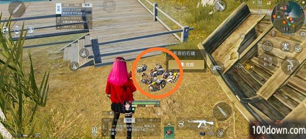 2、到达目的地后,在芦苇旁的石堆位置即可靠近进行挖掘获得宝藏了。