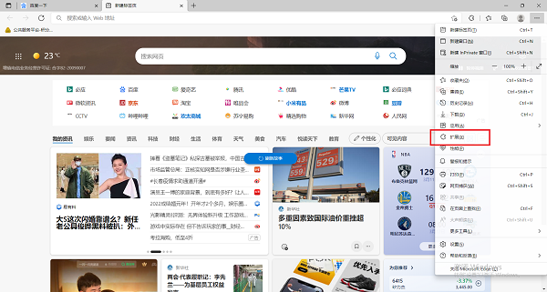 2、在弹出的窗口界面中点击其中的【扩展】功能;
