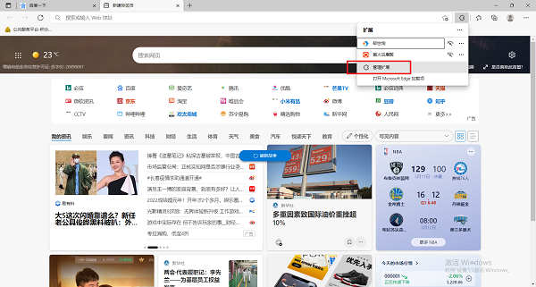 3、在扩展功能打开之后,我们可以看到小窗口中拥有一个【管理扩展】的选项,点击进入其中;