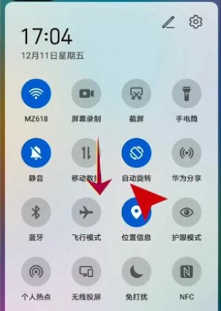 苹果手机屏幕旋转怎么关:1、首先打开华为手机,然后向下滑动屏幕。