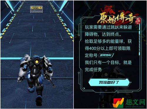 操纵机甲通过跳跃避开障碍物,同时捡起路上丢失的能量球。拿起能量球可以获得积分。积分达到400分即可获得限量称号机甲传奇和游戏大礼包!