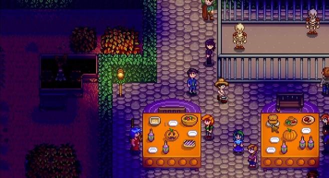 星露谷物语万灵节在鹈鹕镇广场举行。