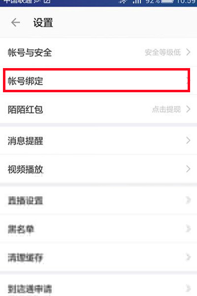 在设置功能的页面中,找到关于账号绑定的功能选项,点击并进入到该功能页面中。