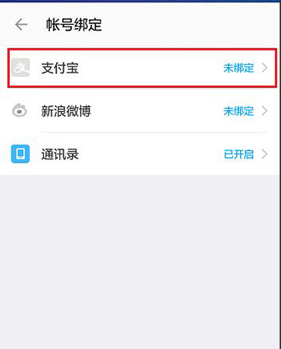 在账号绑定的功能页面中,用户可以点击支付宝右侧的绑定选项,进入到支付宝账号绑定页面中。