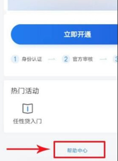 在任性付的功能页面中,找到下方的帮助中心功能选项,点击并进入到帮助中心的页面中。