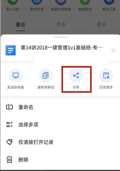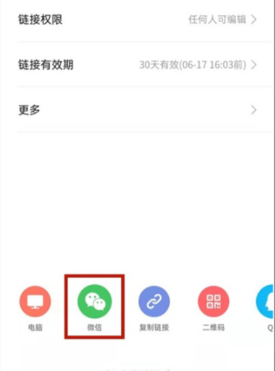 在分享功能的页面中,通过选择微信图标,即可将文档发送到微信页面。