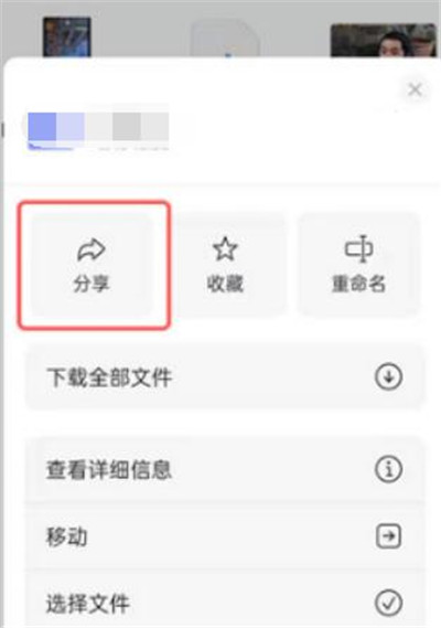 这个时候会出现很多个选项,我们找到【分享】这个选项点击进入。