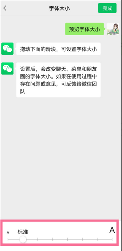 在下方拖动滑块就可以预览字体大小,确认后点击完成j即可;