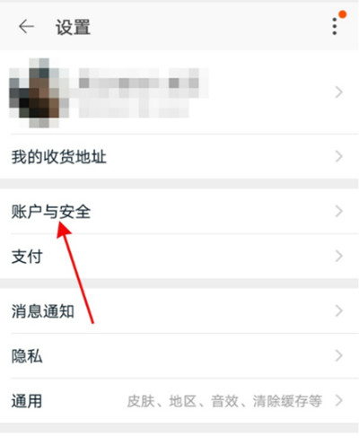 在设置功能的页面中,找到关于账户与安全的功能选项,点击并进入到该功能的界面中。