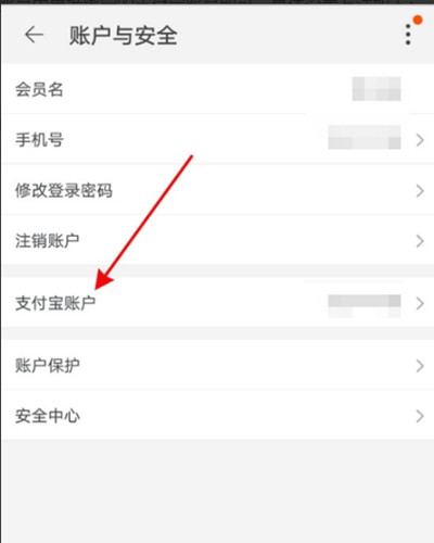 在账户与安全的功能页面中,找到支付宝账户的功能选项,点击并进入到支付宝账户的功能页面。