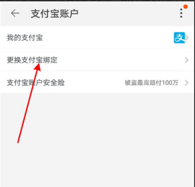 在支付宝账户的页面中,点击换绑支付宝账户功能选项,进入到支付宝账户的换绑页面中。
