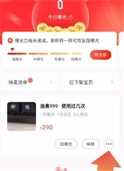 当我们点击了发布之后,就会进入对应的页面,在这里你要找打你想要下架的商品,点击右侧的三个小点。
