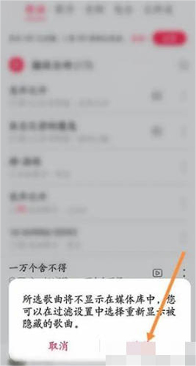 当你点击了隐藏之后,歌曲不会在媒体库中显示,可以在过滤设置中选择被隐藏的歌曲。