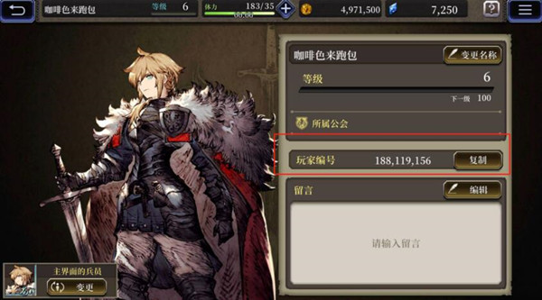 4、最后在【玩家信息】界面有一条内容显示的是玩家编号,这个玩家编号就是大家的游戏ID了,这个ID可以直接复制,这个小设定还是很贴心的。