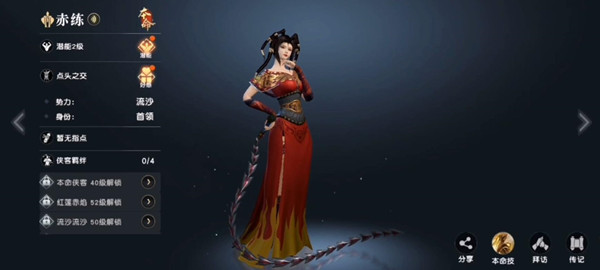 2、在侠客选项中我们可以看到所有的侠客,但是只有亮着的也就是我们已经结识的侠客才能查看传记;