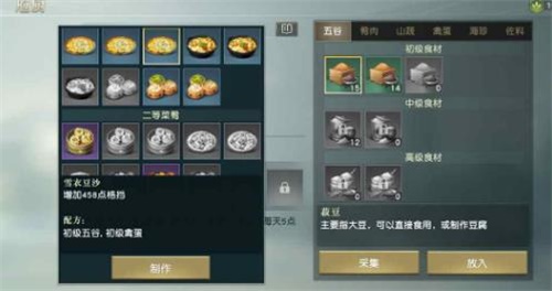 3、雪衣豆沙:初级五谷+初级禽蛋(增加458格挡)