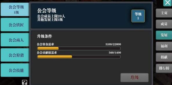 在魔渊之刃中想要升级公会那么两个条件需要满足,一个是公会资金需求,另外一个是公会贡献值需求。