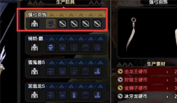 在怪物猎人崛起中有非常多的道具可以获得,其中有一个道具叫做强弓羽饰,很多玩家不清楚强弓羽饰是怎么获得的,今天就让小编来带大家看看获得方法吧,希望可以帮到大家。