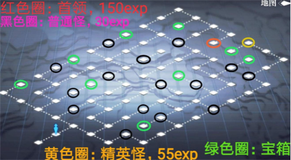 4、黑色圈:普通怪,30exp;