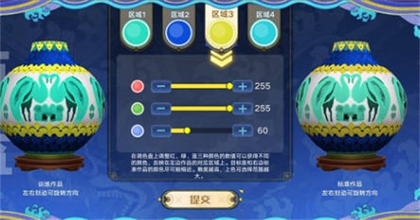 3:每个区域都要对应一块图案,要判断区域对应的哪个图案,然后拉动红色蓝三个进度条,拖动到对应右侧的样品颜色就好了;