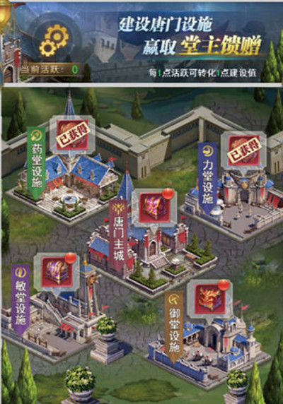 活动期间,累积活跃值可用来建设唐门四堂设施及主城,建设完各设施后即可领取对应奖励。