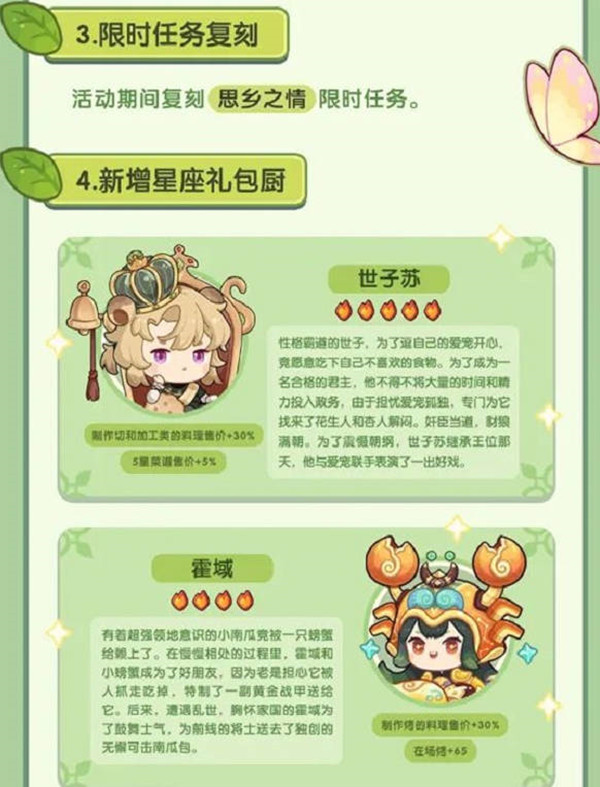 3:还有就是限时任务复刻,在活动期间思乡之情限时任务会进行复刻的;