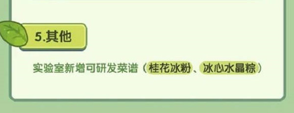 5:其他的内容就是实验室新增加可以研发菜谱,桂花冰粉,冰心水晶粽;