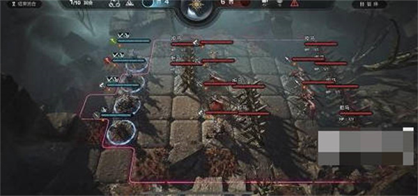 3:同时祈毒者,攻击敌方战士,大剑士攻击敌方战士,然后进入第二个回合,把祈毒者移动到下图的位置攻击拒马,祈火者攻击敌方空袭手;
